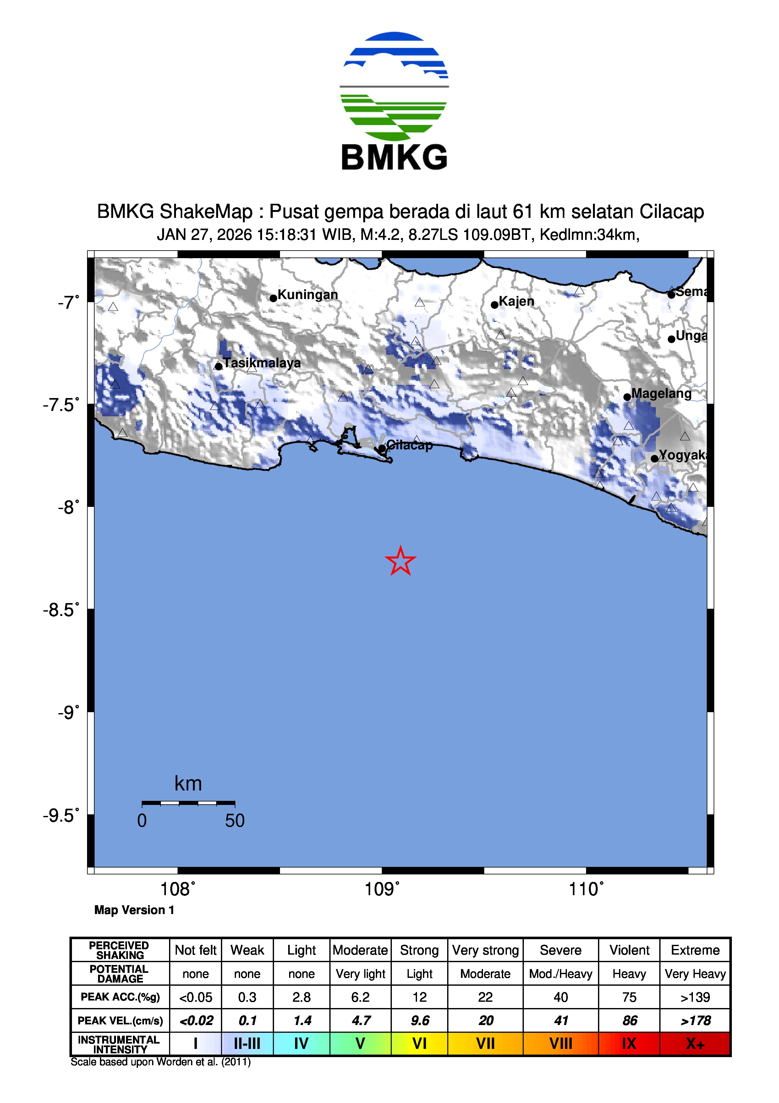 Pusat gempa berada di laut 61 km selatan Cilacap