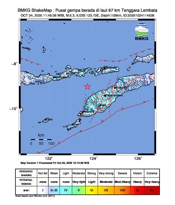 Pusat gempa berada di laut 67 km Tenggara Lembata