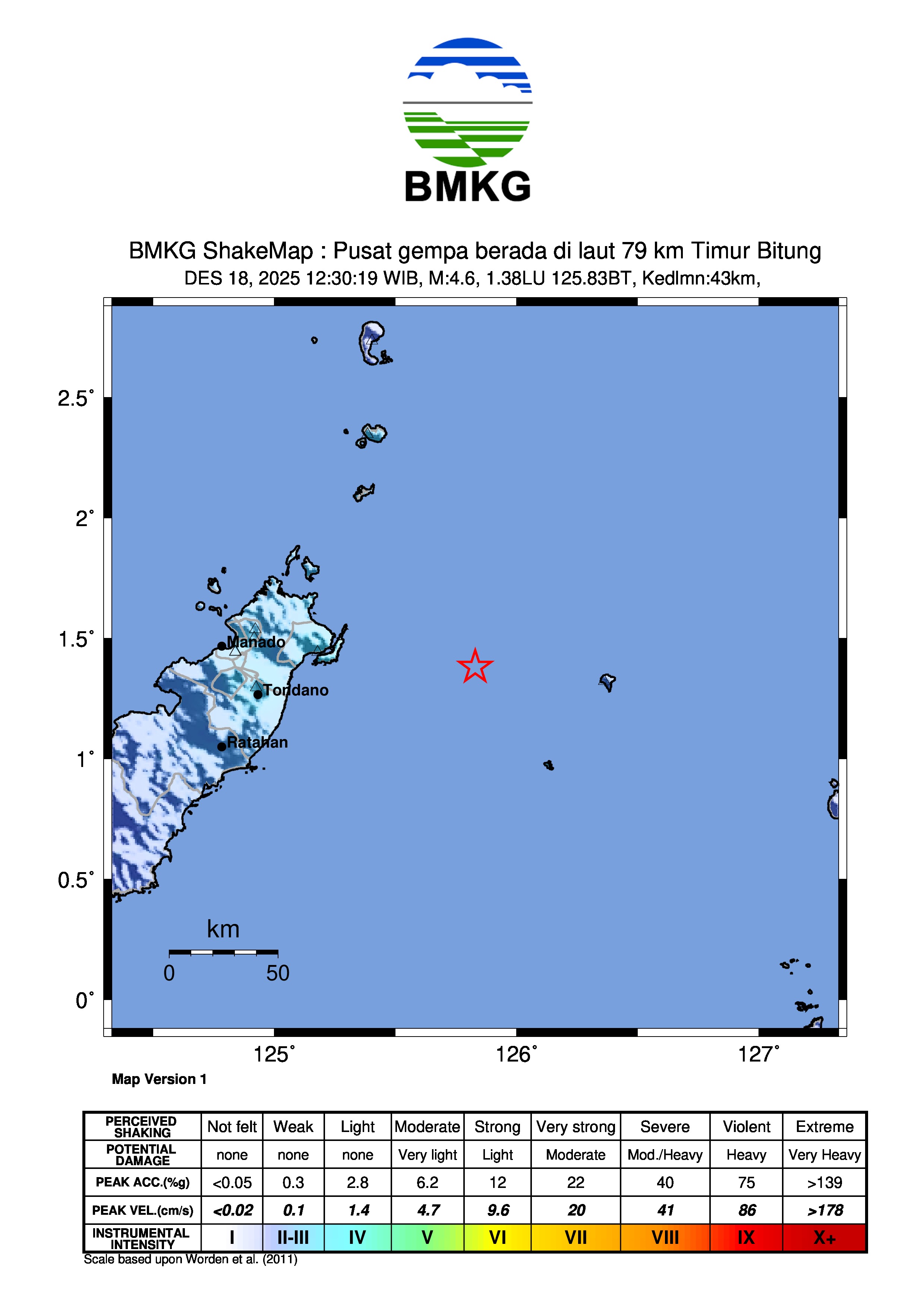 Pusat gempa berada di laut 79 km Timur Bitung