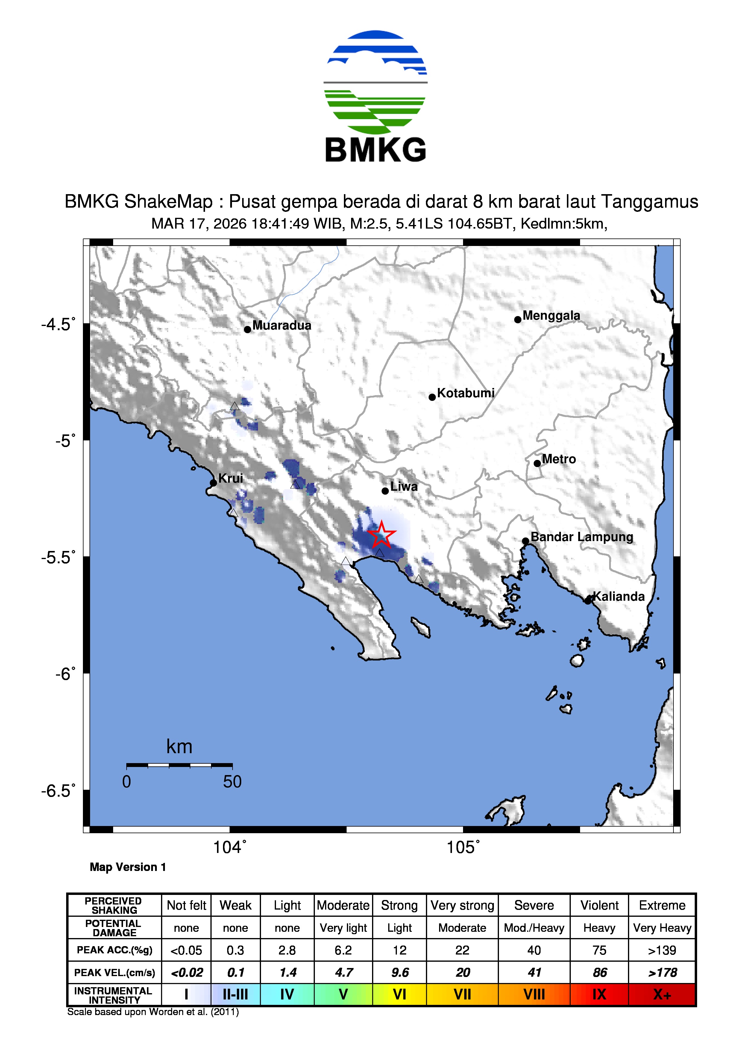 Pusat gempa berada di darat 8 km barat laut Tanggamus