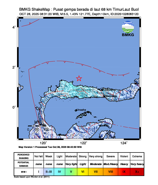 Pusat gempa berada di laut 68 km TimurLaut Buol