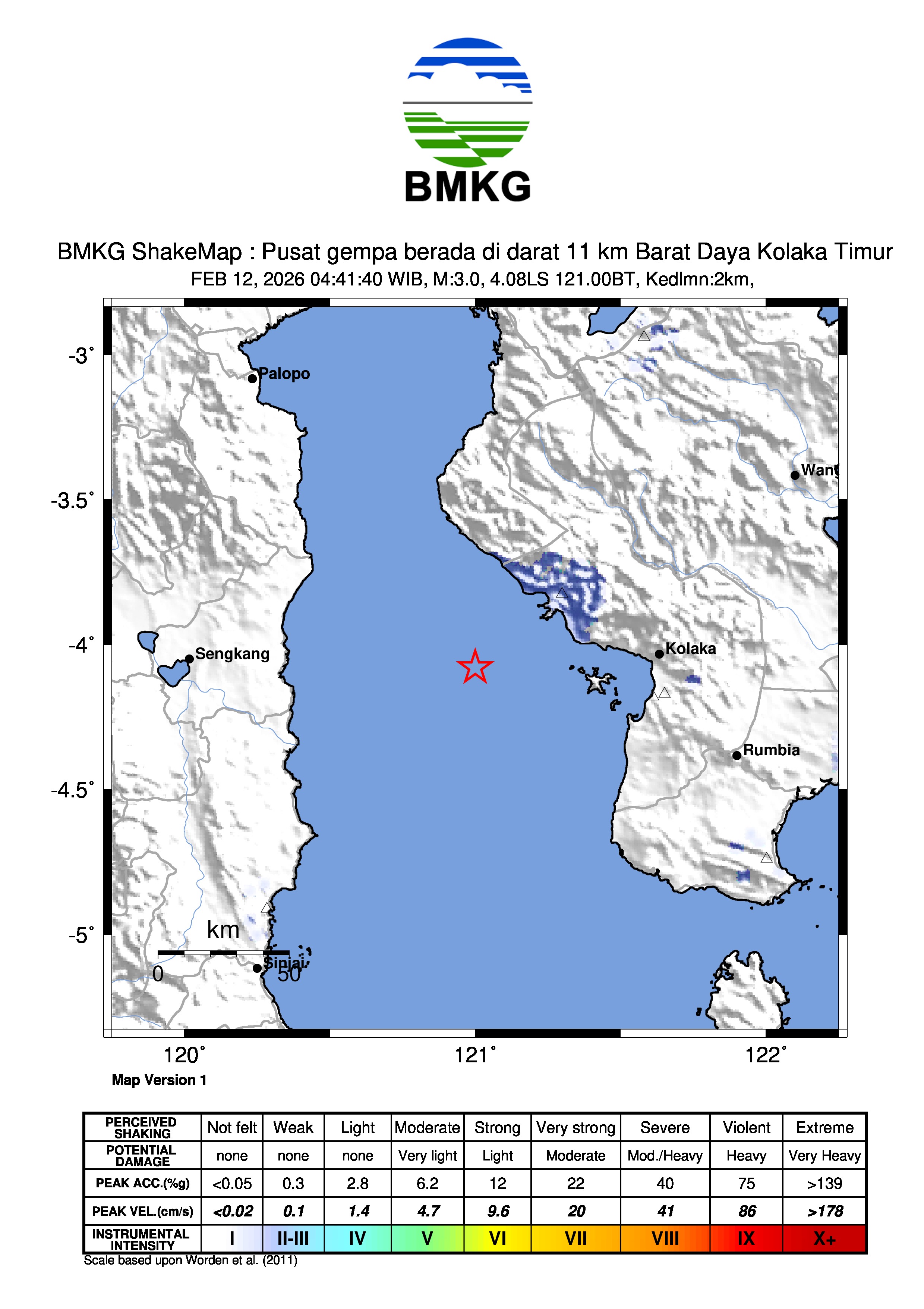 Pusat gempa berada di darat 11 km Barat Daya Kolaka Timur