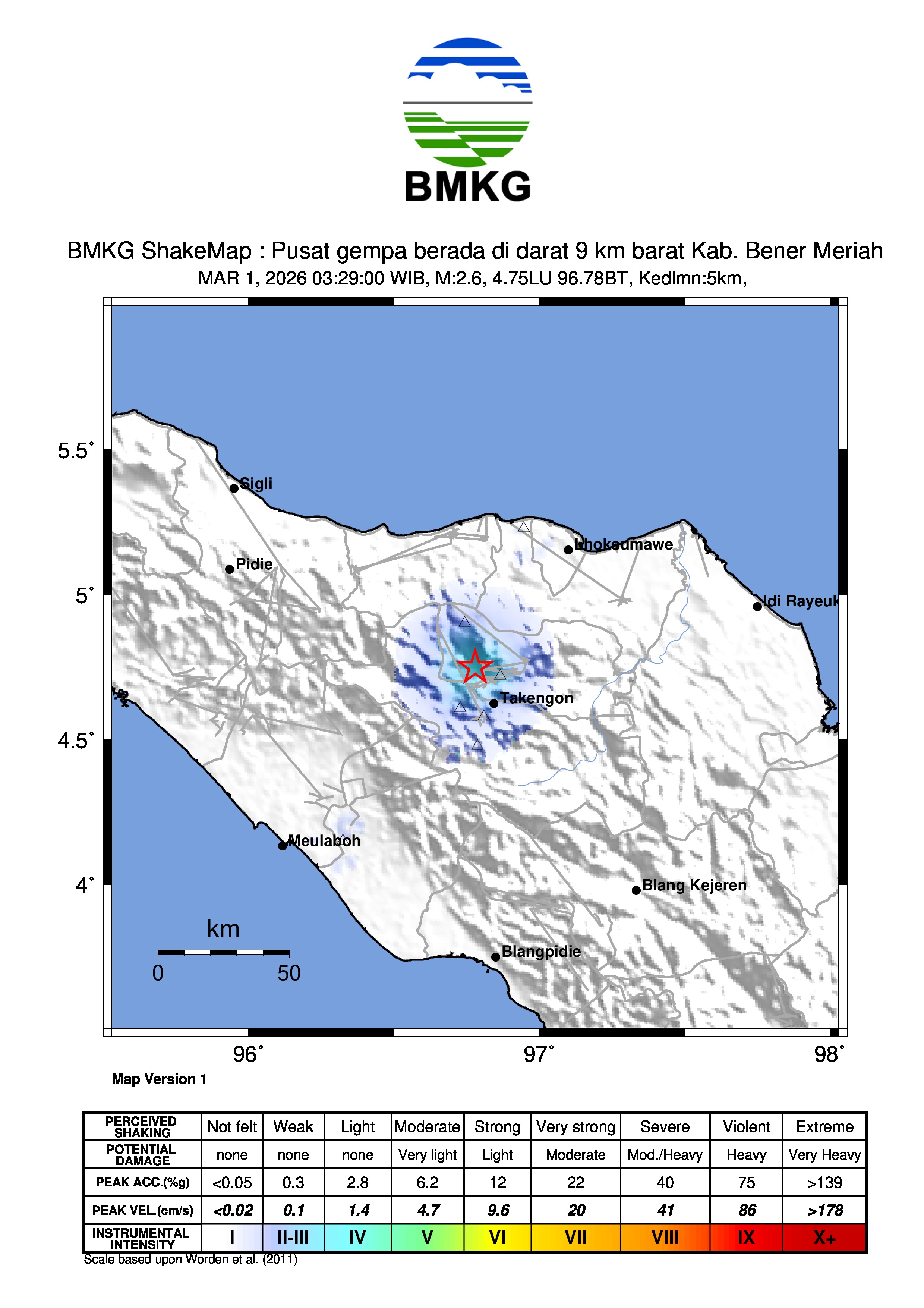 Pusat gempa berada di darat 9 km barat Kab. Bener Meriah