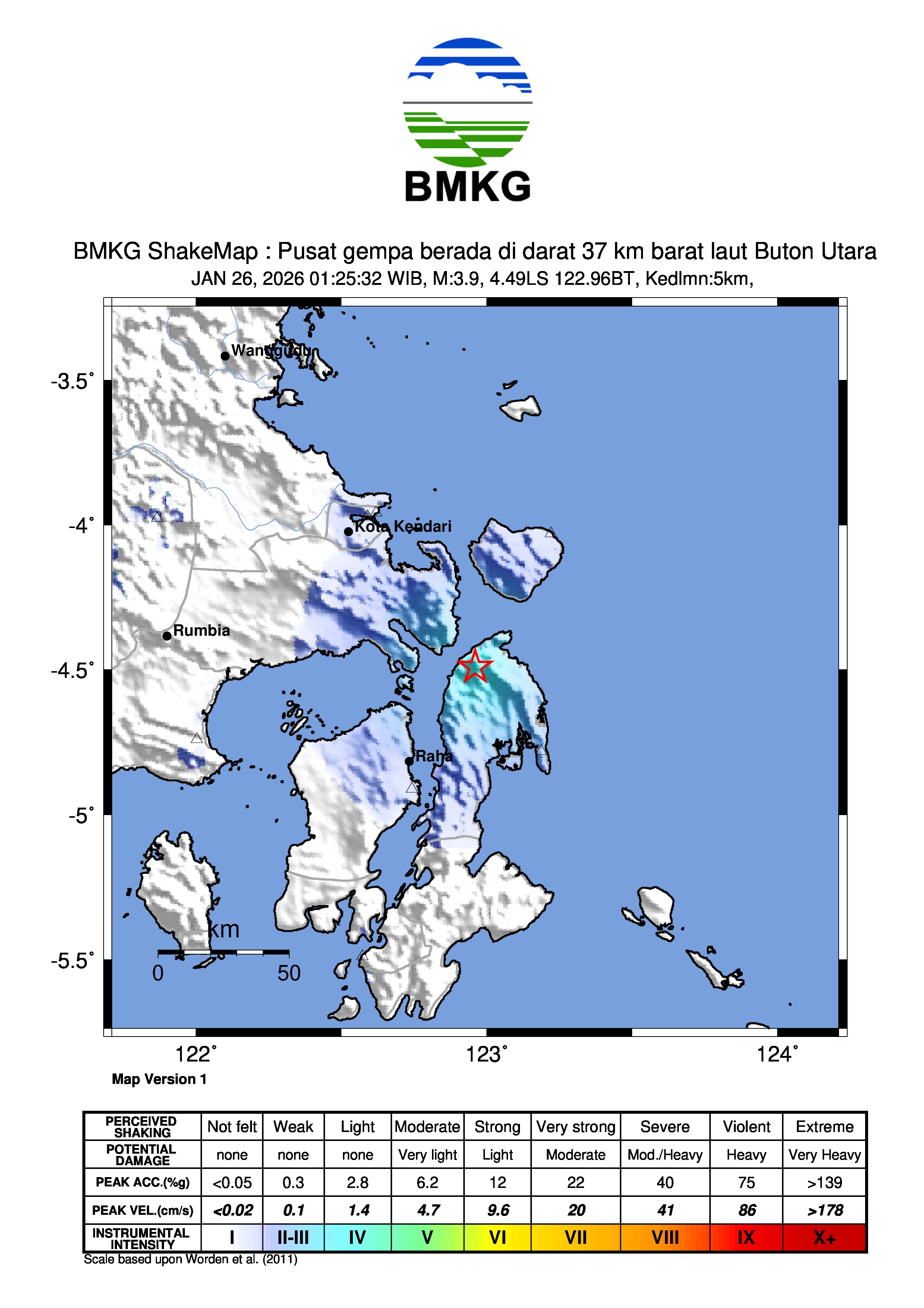 Pusat gempa berada di darat 37 km barat laut Buton Utara
