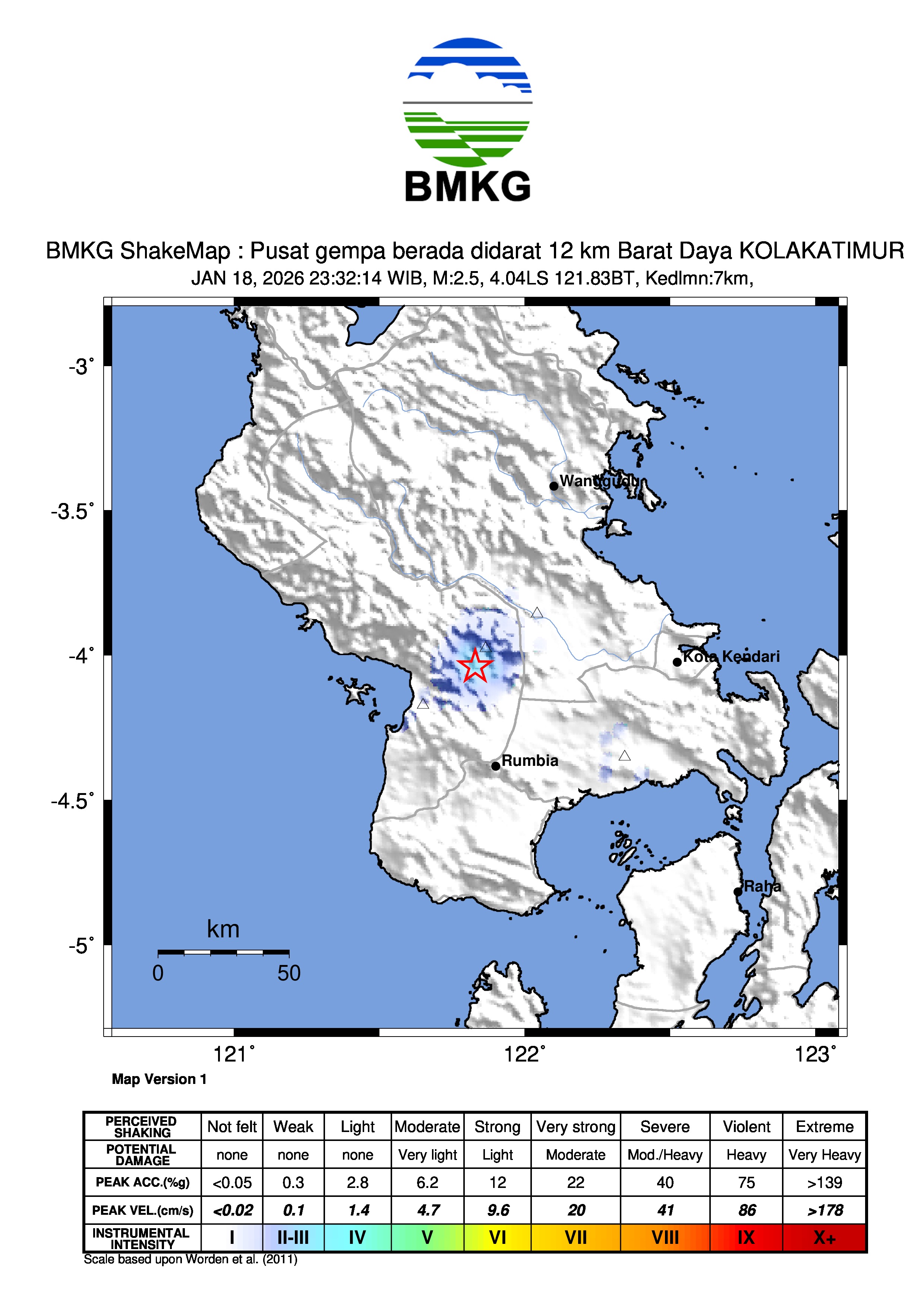 Pusat gempa berada didarat 12 km Barat Daya KOLAKATIMUR
