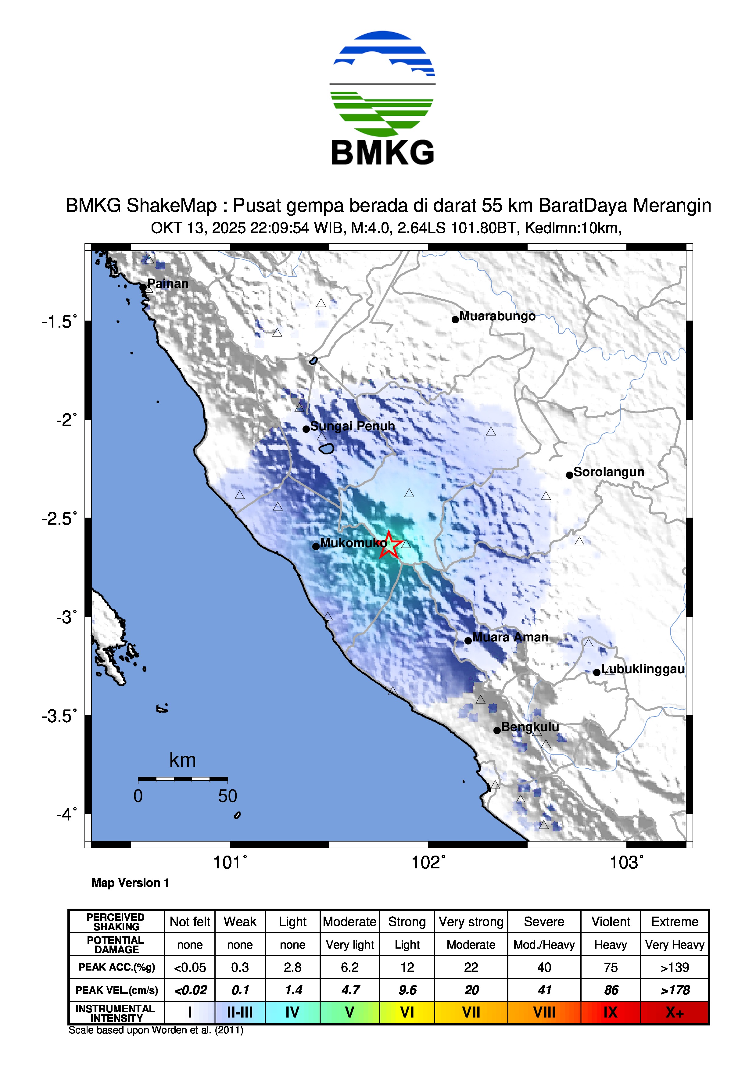 Pusat gempa berada di darat 55 km BaratDaya Merangin