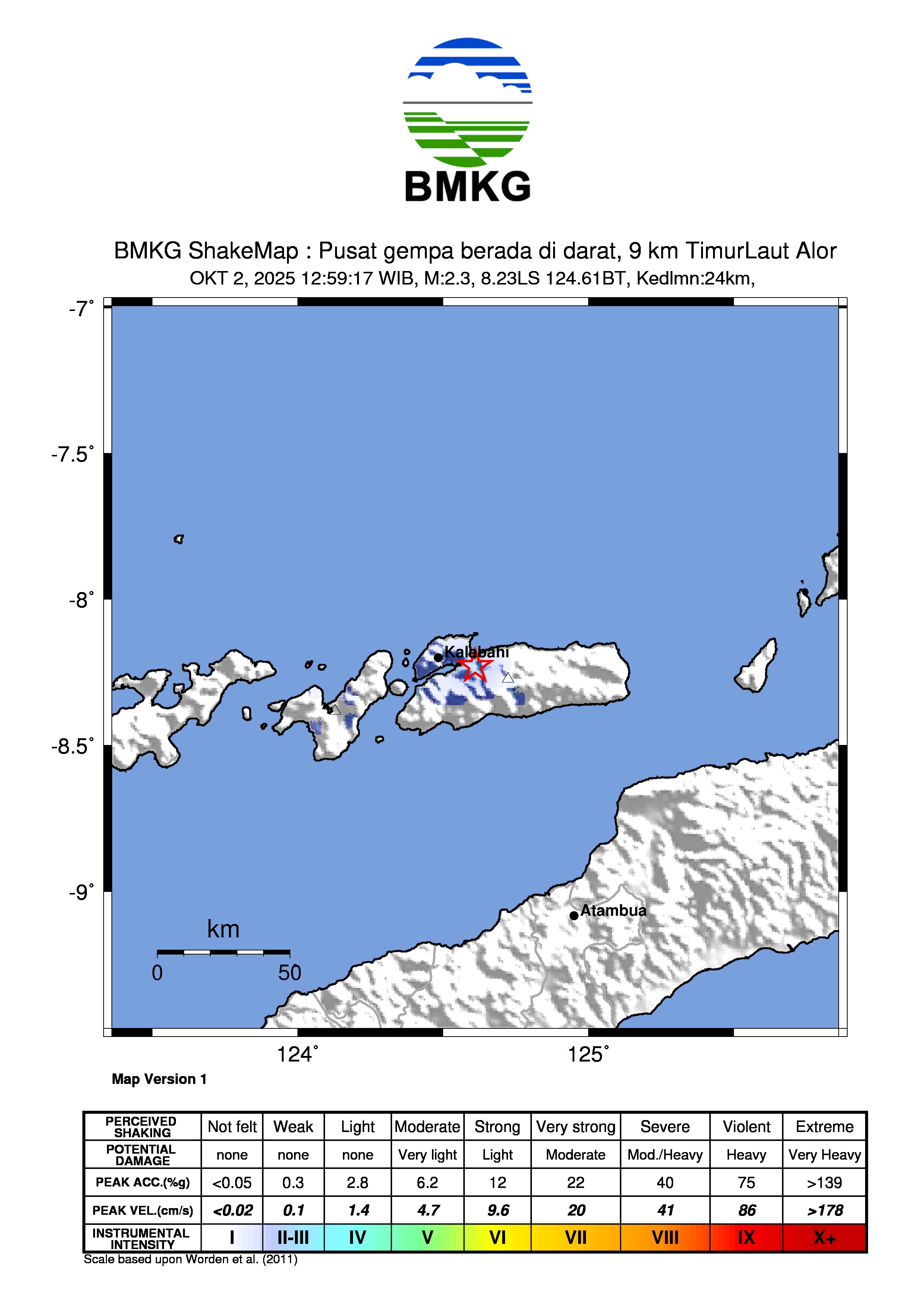 Pusat gempa berada di darat, 9 km TimurLaut Alor
