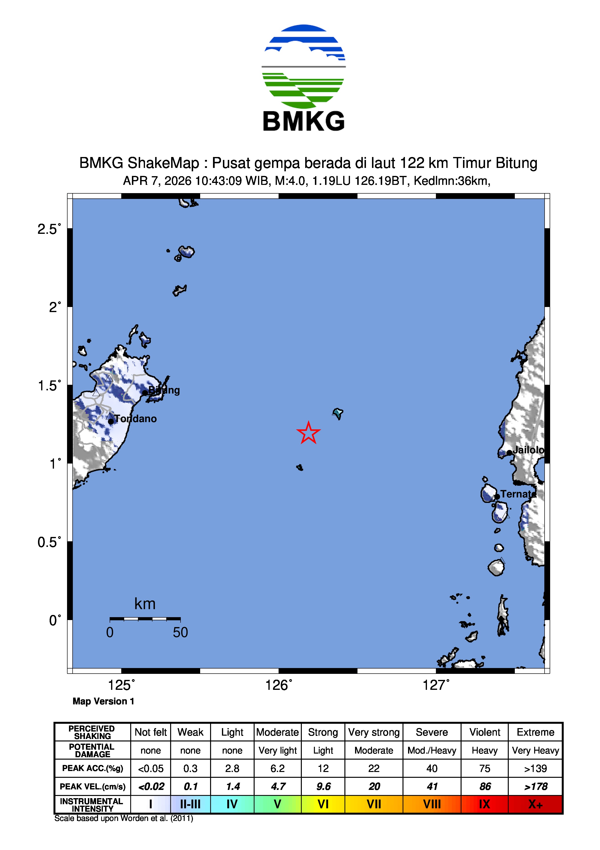Gempabumi Tektonik M7,6 di Pulau Batang Dua, Ternate, Maluku Utara, Berpotensi Tsunami