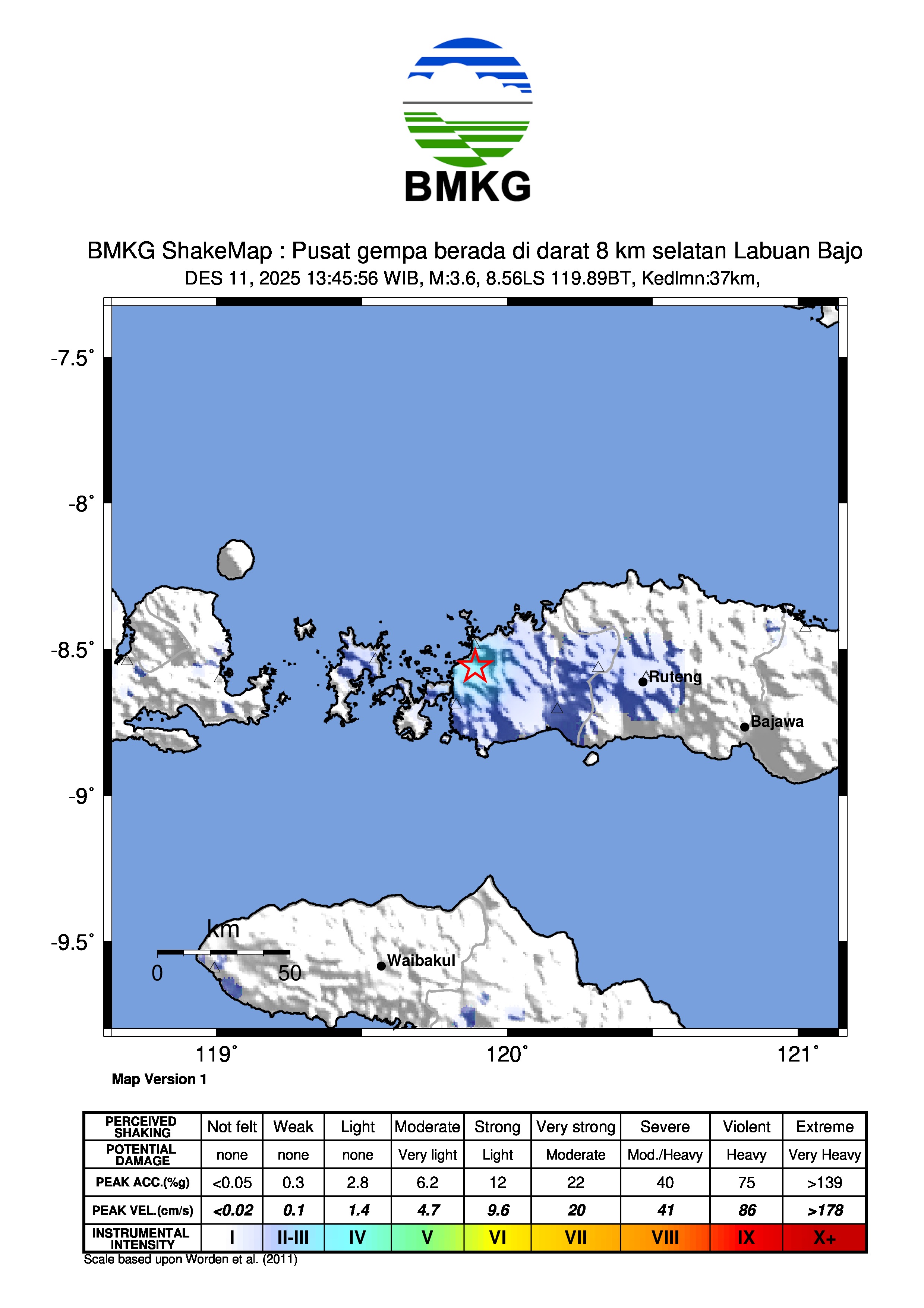 Pusat gempa berada di darat 8 km selatan Labuan Bajo