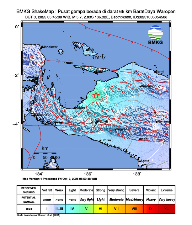 Pusat gempa berada di darat 66 km BaratDaya Waropen