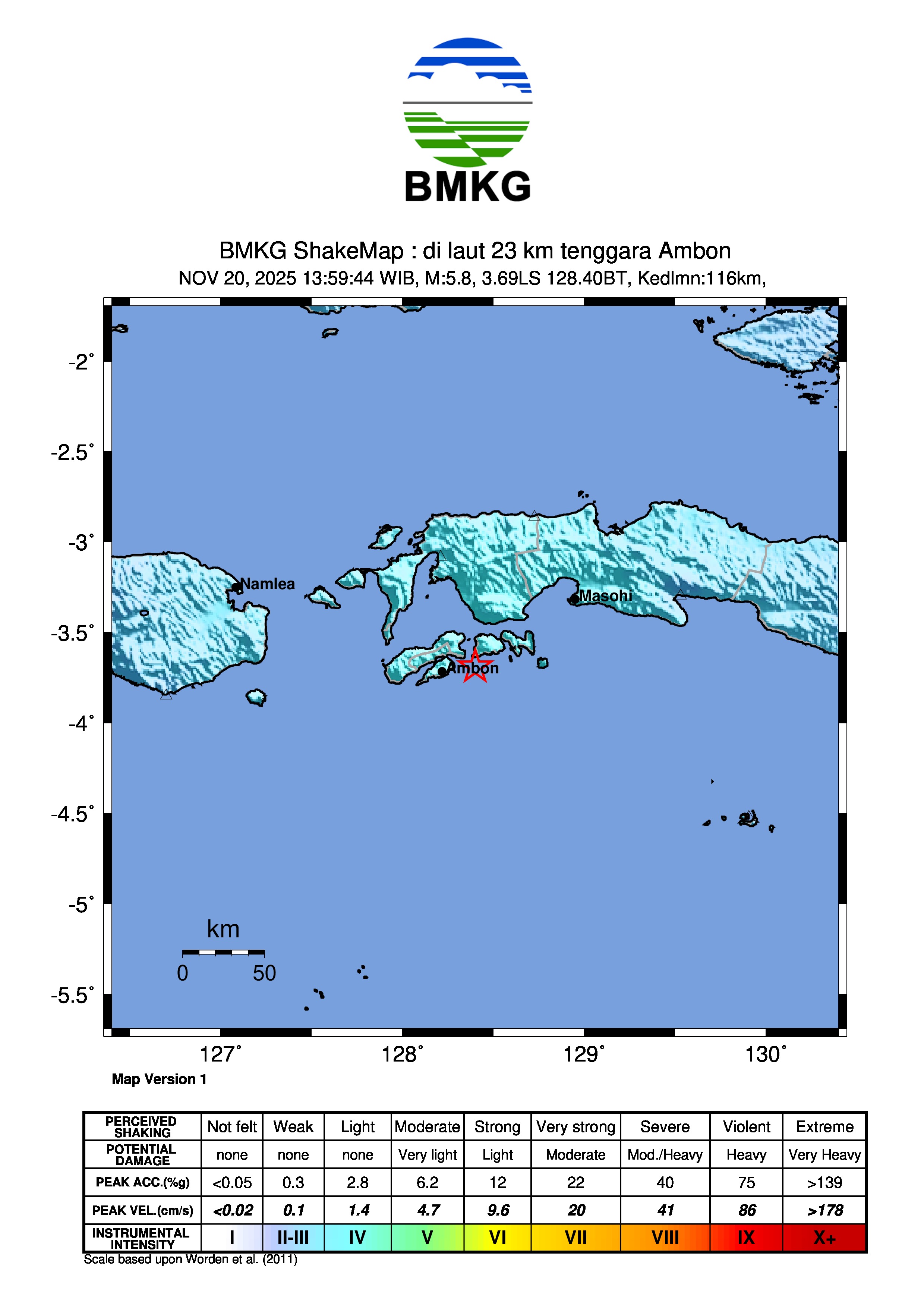 Pusat gempa berada di laut 15 km tenggara Ambon