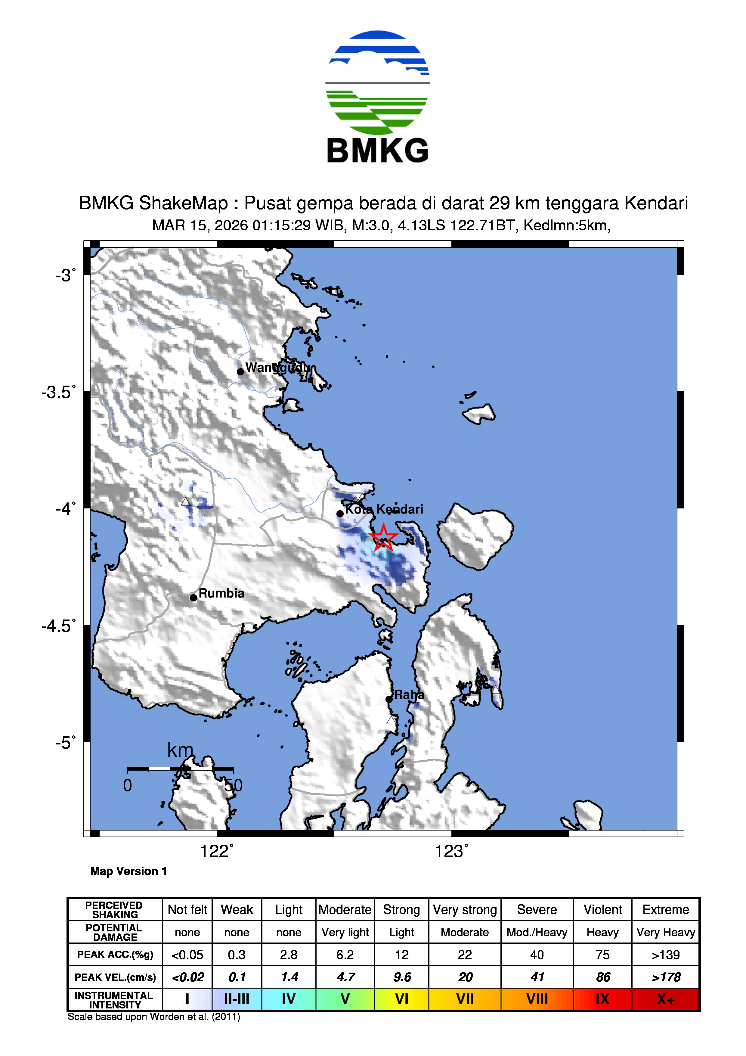 Pusat gempa berada di darat 29 km tenggara Kendari
