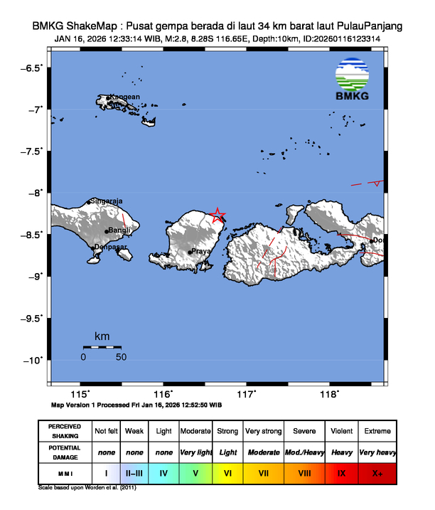 Pusat gempa berada di laut 34 km barat laut PulauPanjang