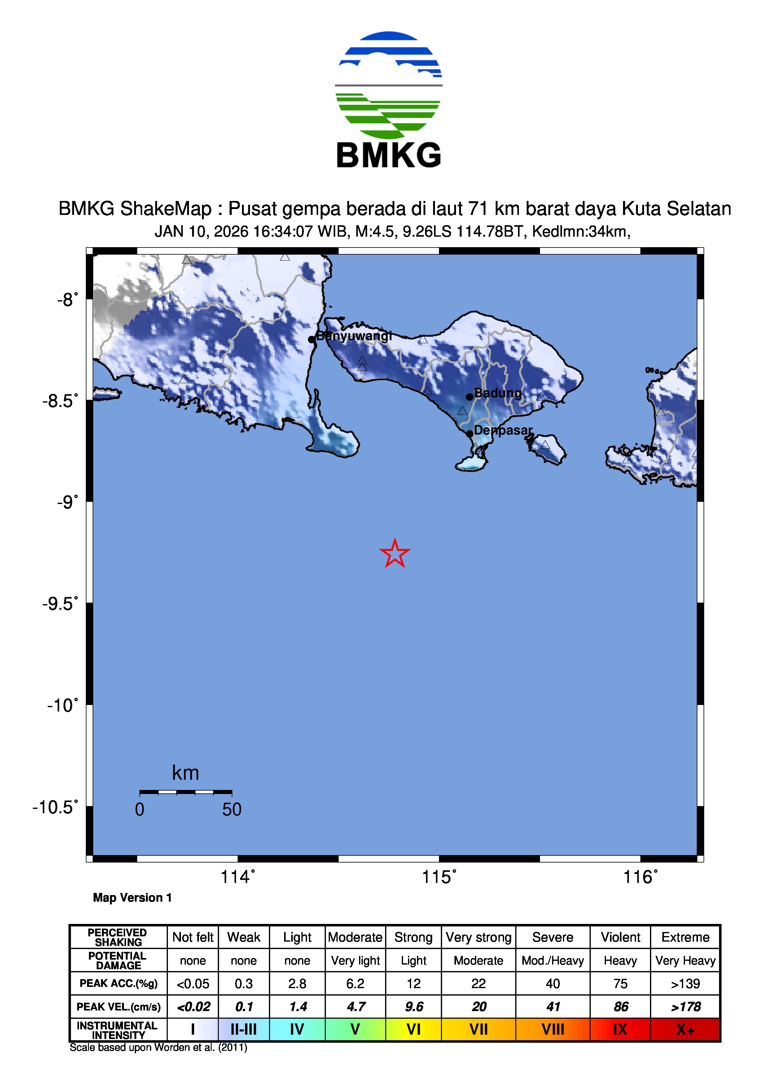 Pusat gempa berada di laut 55 km selatan Mukomuko