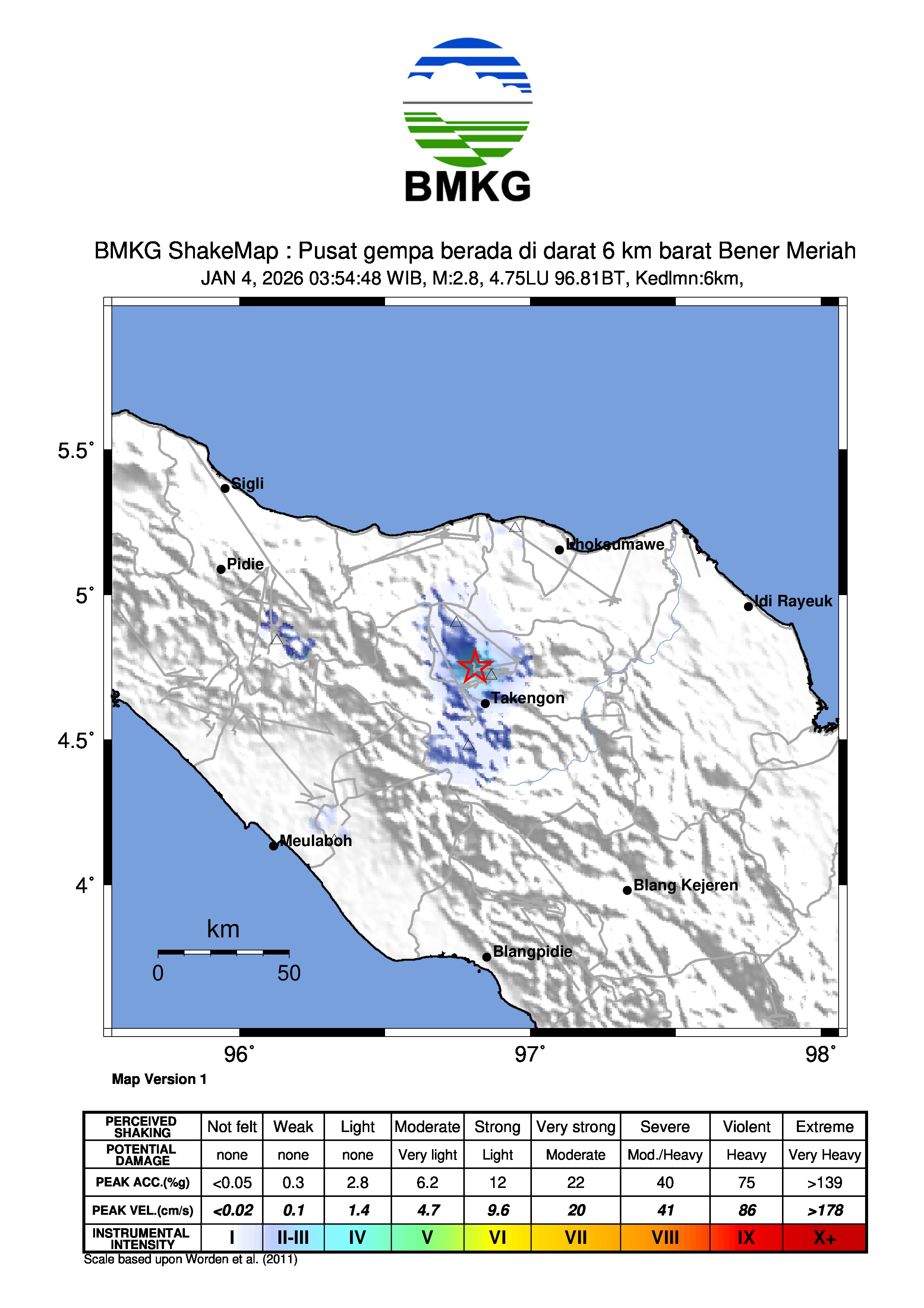 Pusat gempa berada di darat 6 km barat Bener Meriah