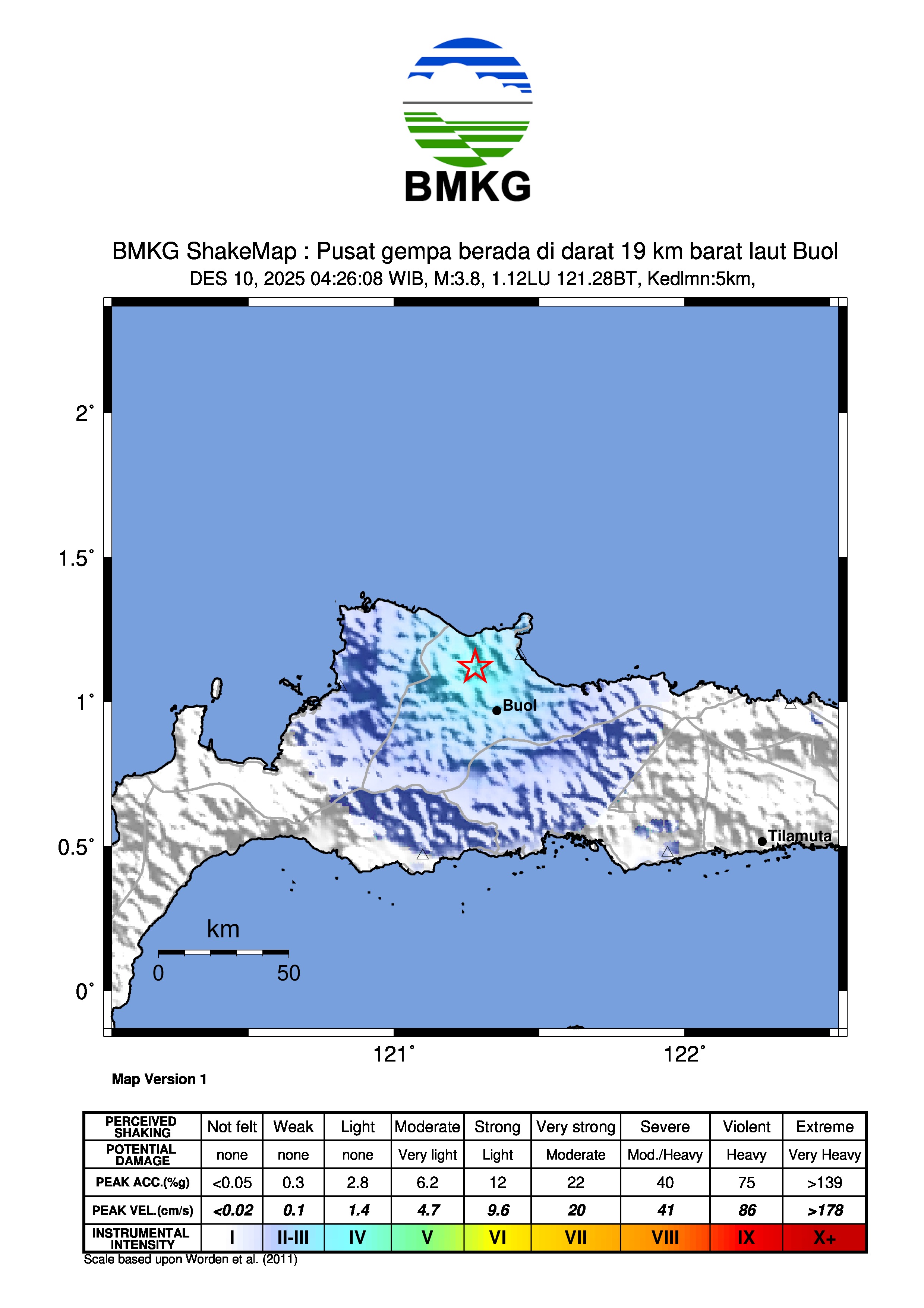 Pusat gempa berada di darat 19 km barat laut Buol