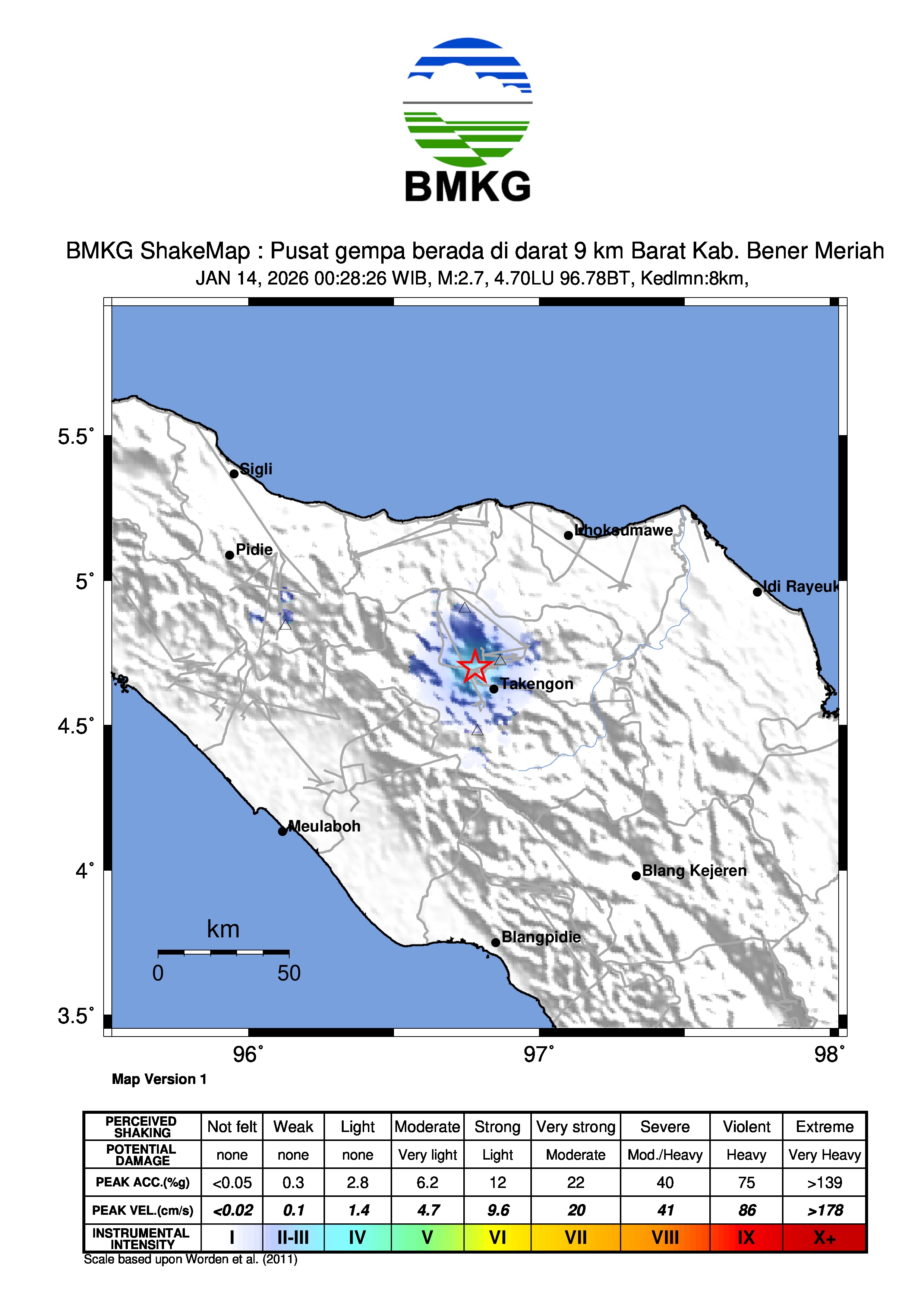 Pusat gempa berada di laut 50 km BaratDaya Bengkulu Selatan