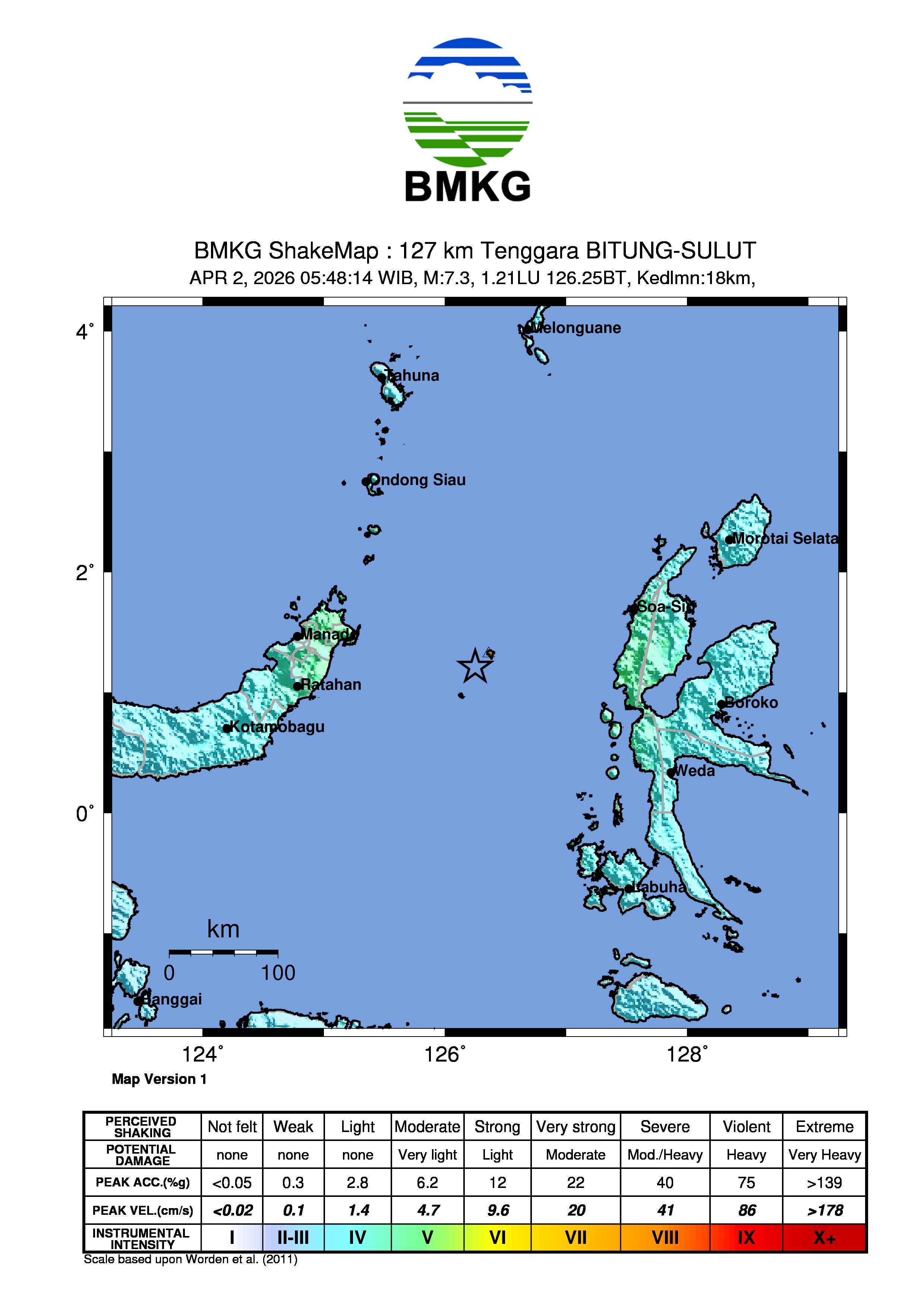 Pusat gempa berada di laut 127 km Tenggara Bitung