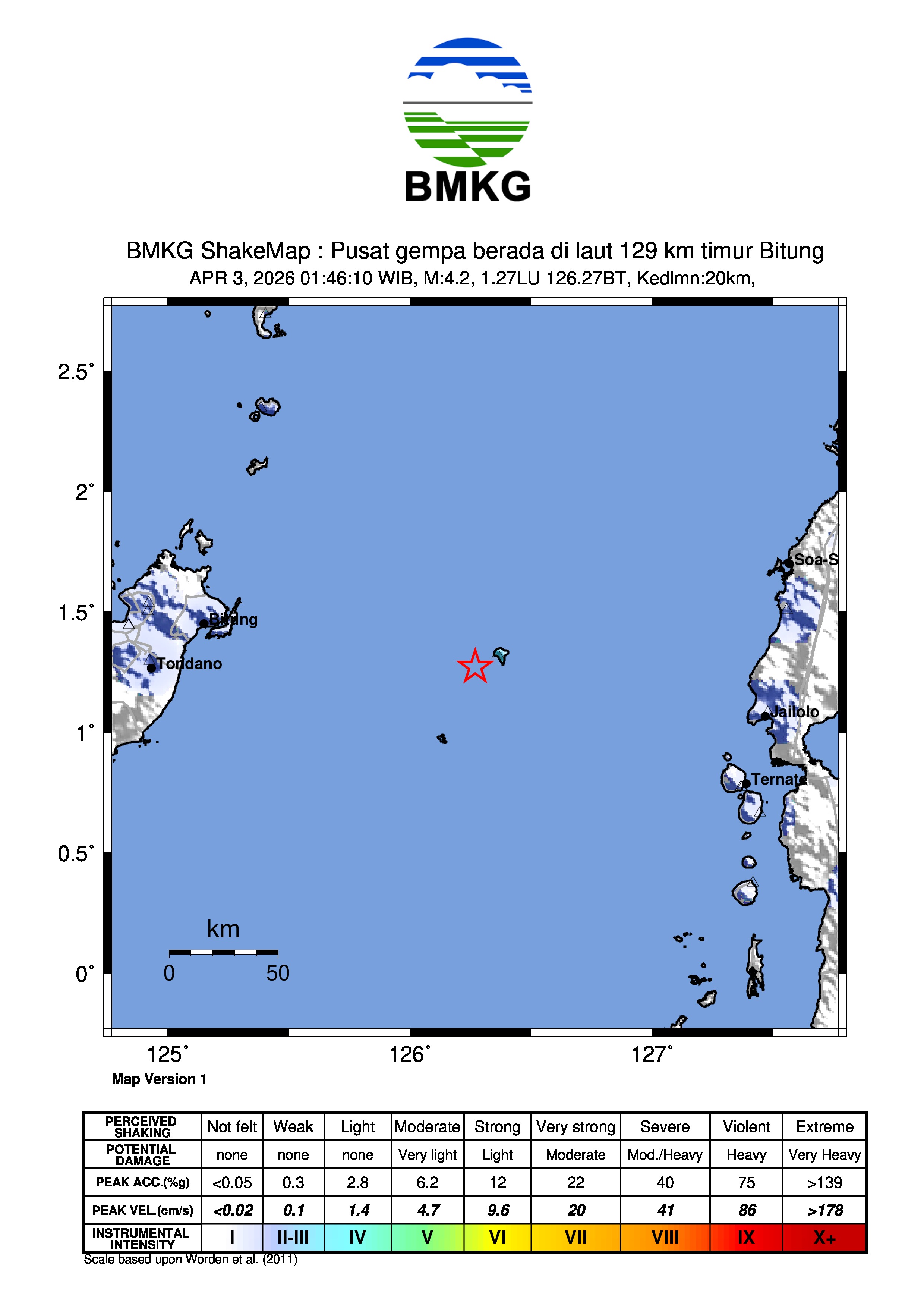 Gempabumi Tektonik M7,6 di Pulau Batang Dua, Ternate, Maluku Utara, Berpotensi Tsunami