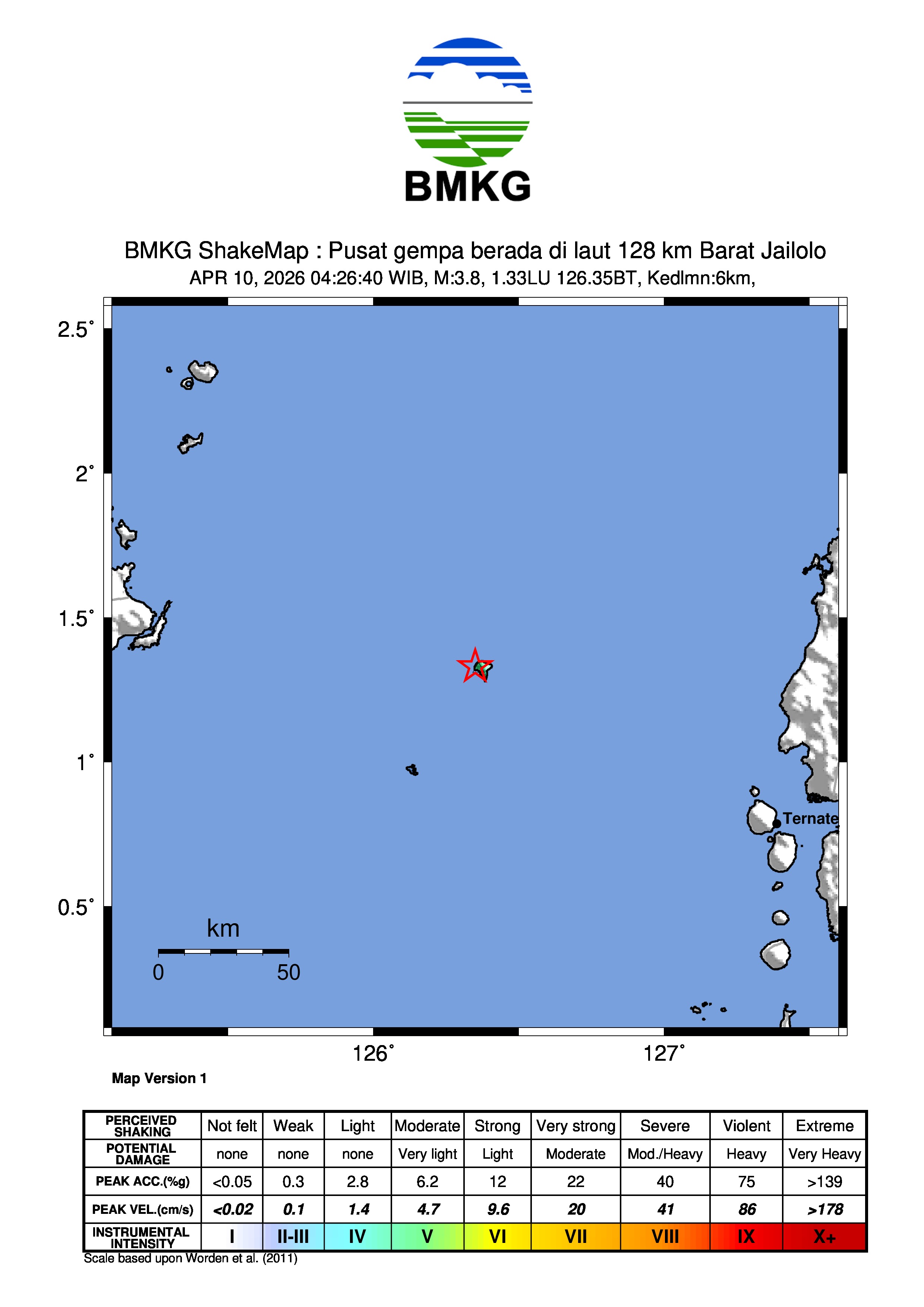 Pusat gempa berada di laut 128 km Barat Jailolo