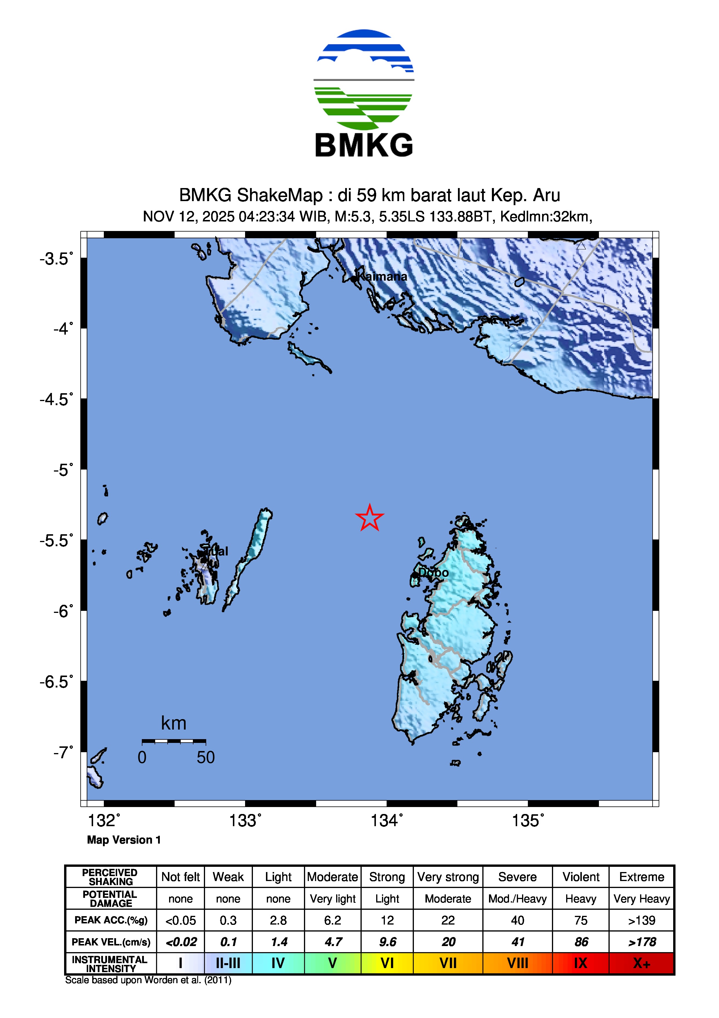 Pusat gempa berada di laut 60 km barat laut Kep. Aru
