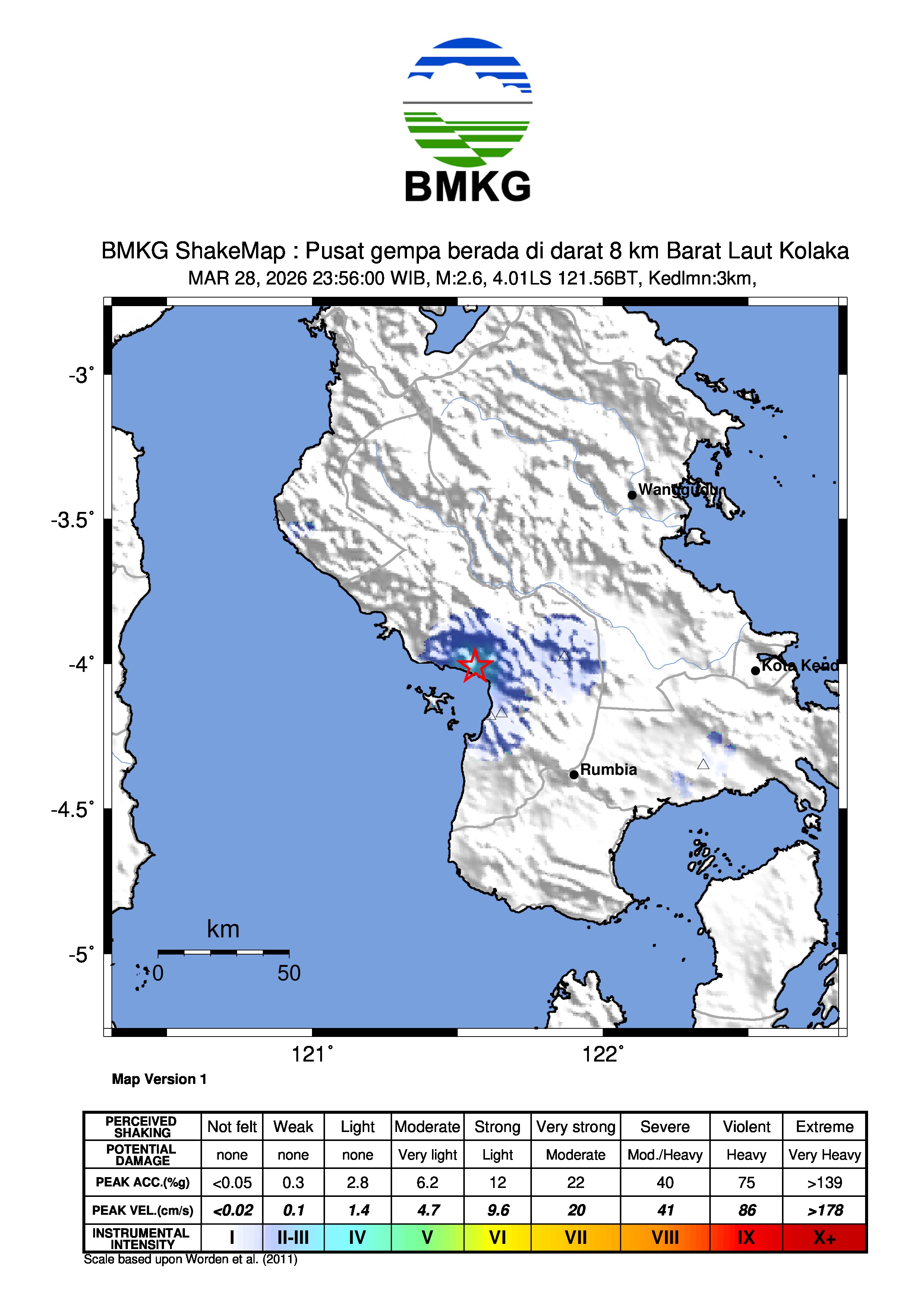 Pusat gempa berada di darat 8 km Barat Laut Kolaka