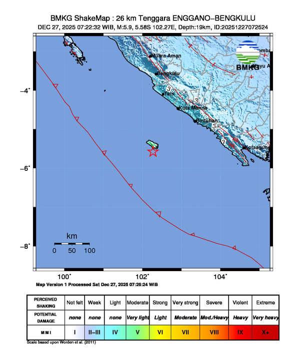 26 km Tenggara ENGGANO-BENGKULU